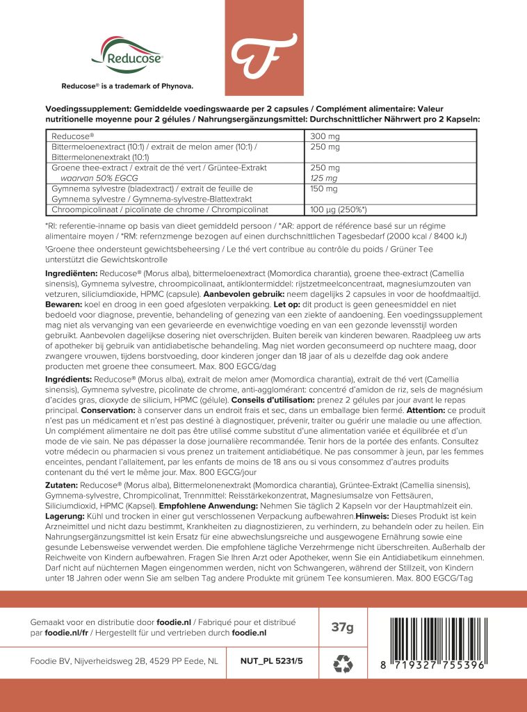 Bittermelon is een natuurlijk ingrediënt dat bekend staat om zijn bloedsuikerverlagende eigenschappen en dus synergetisch werkt met Reducose® en chroom. Uniek aan bittermeloen is dat het zowel de bloedsuiker verlaagt als de insulinefunctie ondersteunt, ideaal bij insulineresistentie of als natuurlijke ondersteuning bij afslanken en gewichtsverlies.