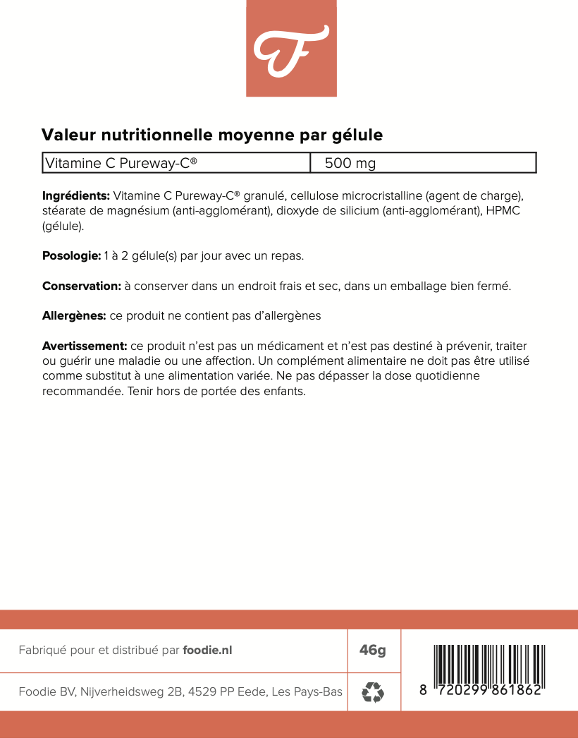 Chaque capsule contient 500 mg de cette forme spéciale PureWay-C™ de vitamine C.