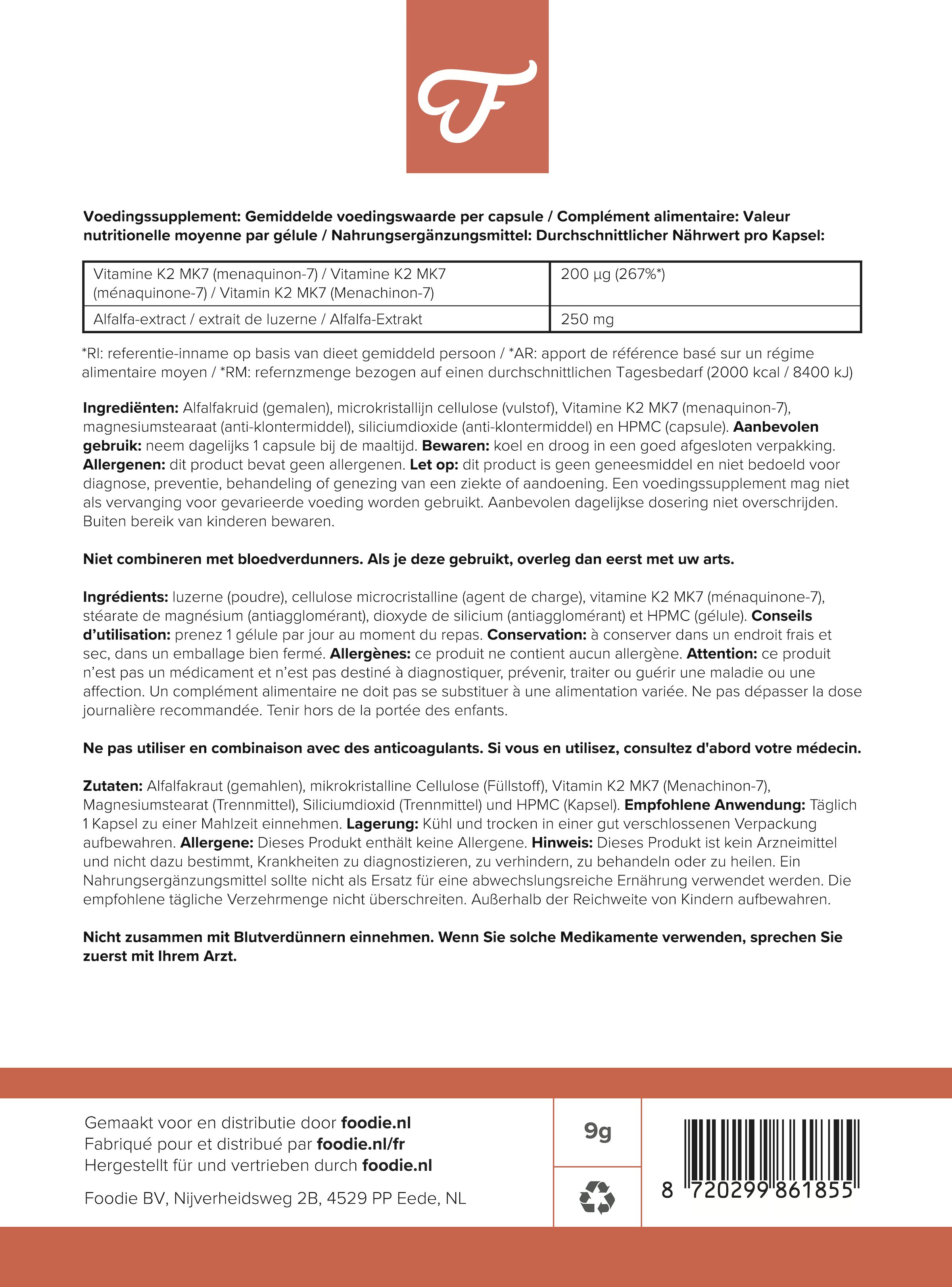 Voordelen van Vitamine K2 Boost met Alfalfa-extract: