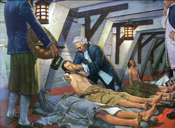De Schotse arts James Lind ontdekte in 1747 dat citrusvruchten zoals sinaasappels en citroenen scheurbuik konden voorkomen. Hij gaf enkele zeelieden dagelijks citroenen en sinaasappels, en tot ieders verbazing herstelden ze! Dat was het begin van ons begrip van vitamine C.